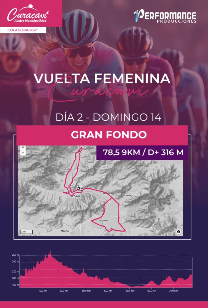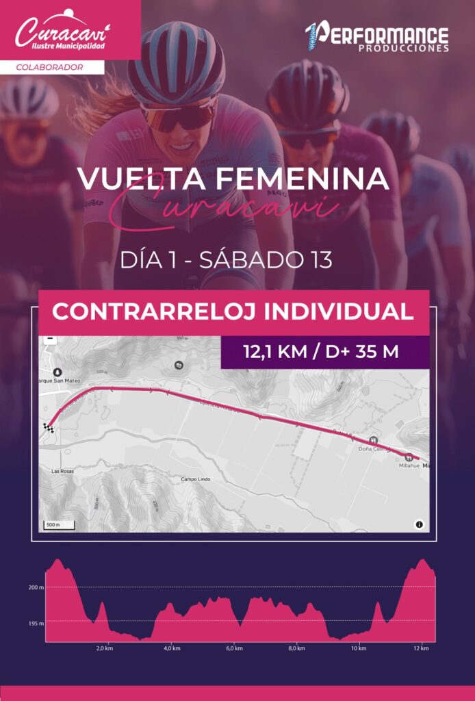 La Vuelta Femenina Curacaví 2025 es un evento ciclístico 100% femenino que se realizará el 20-21 de Septiembre de 2025, convocando a ciclistas desde categorías amateur hasta Élite y Máster (federadas y no federadas). El evento incluirá tres pruebas: Gran Fondo, Circuito Urbano y Contrarreloj Individual (CRI), con premiaciones en medallas para las tres primeras de cada categoría individual y premios en efectivo para los tres mejores equipos.